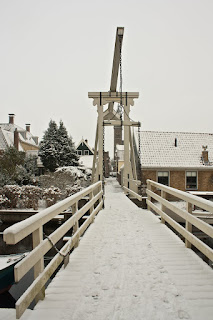 Als het koud is kan het maar beter ook sneeuwen, anders heeft de kou geen zin. En zie hier: sneeuw in Edam. Dat geeft toch weer leuke plaatjes.