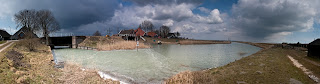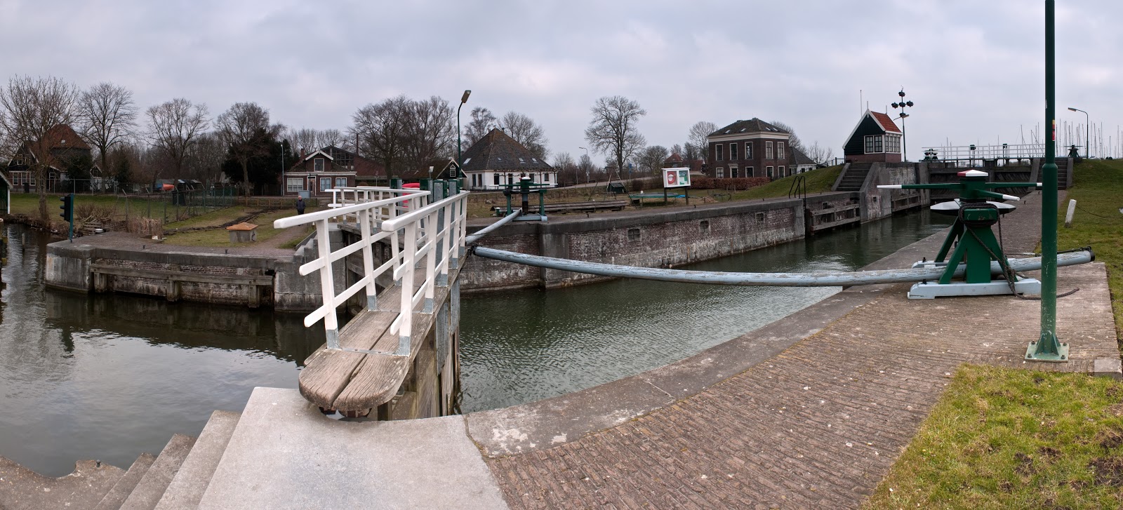 Enkele panorama's rondom de sluis bij de haven van Edam.