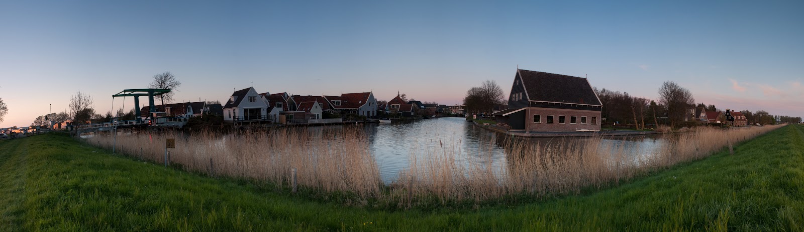 Vandaag heb ik rond zonsondergang deze foto gemaakt. Helaas is mijn statief tegen zijn eind aan het lopen. Halverwege zakte de kop wat scheef waardoor de helft recht en de helft scheef is. De foto "recht" zetten en bijsnijden heeft nog wat geholpen, maar het geeft toch een wat vreemde bolling. Binnenkort ga ik hier nogmaals langs om een goede foto te maken.