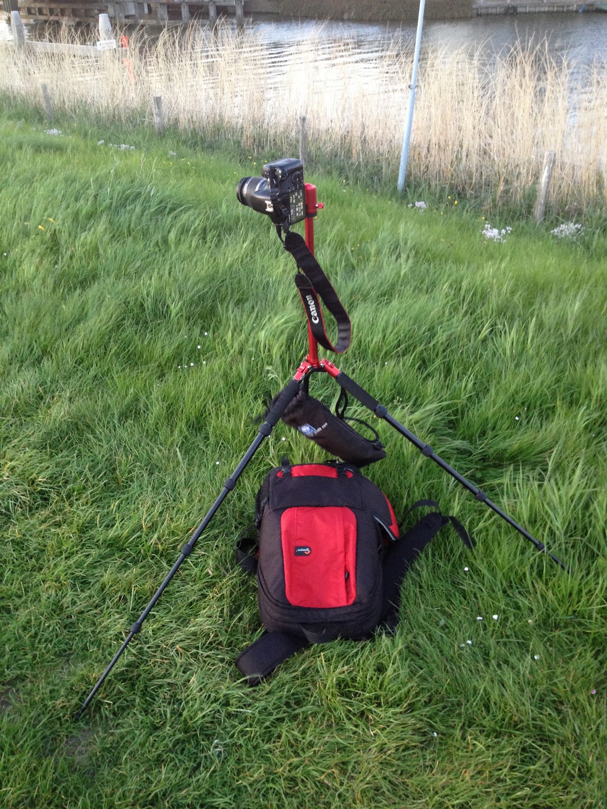 Met het statief ben ik tot nog toe erg blij. Toen ik bovenstaande foto maakte waaide het behoorlijk. Het nieuwe statief kan iets wat de oude niet kan: breder staan, waardoor de boel veel stabieler wordt. Dan wordt ie wel wat lager, maar dat was voor deze foto niet erg.