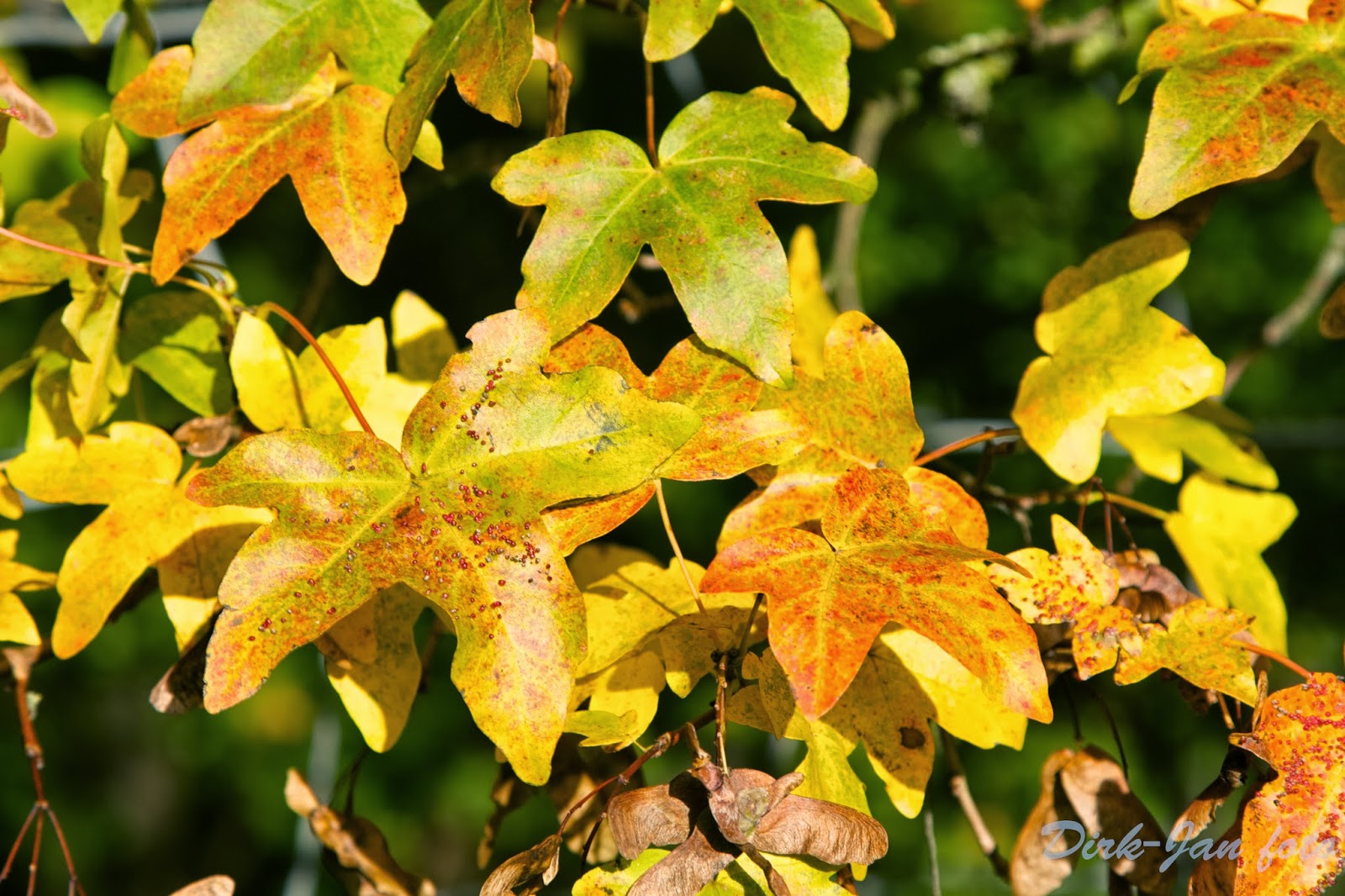 Herfstbladeren en paddestoelen.