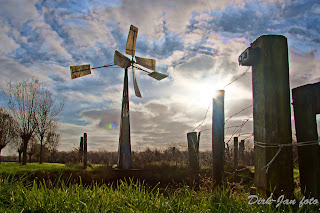 In Edam heb ik een HDR foto gemaakt met 5 verschillende belichtingen van een kleine windmolen met de zon erachter.
